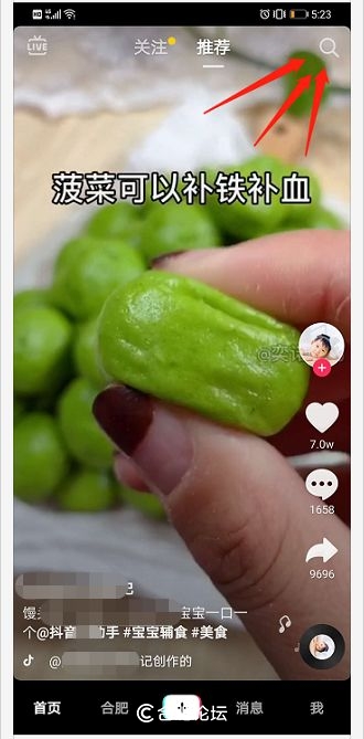 2.打开抖音短视频,点击右上角“放大镜”图标;