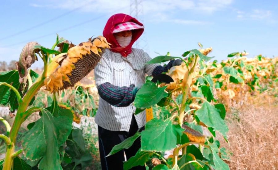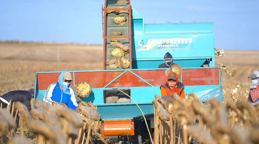 今年3月,洽洽把葵花籽种植基地搬到了皮山,在皮山新建3200亩葵花籽标准化种植示范基地和坚果初级加工厂。7月初,大片的向日葵结出饱满的果实,不仅成为当地一道美丽的风景,也迎来首次丰收的喜悦。