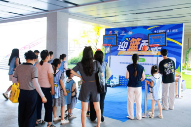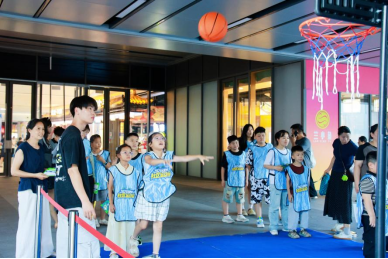 趣味投篮区的篮球架前,孩子们纷纷化身"篮球达人",将篮球投入篮框中。投篮这项活动孩子都很喜欢,一球接着一球也将气氛推向高潮,亲子上阵,其乐融融。