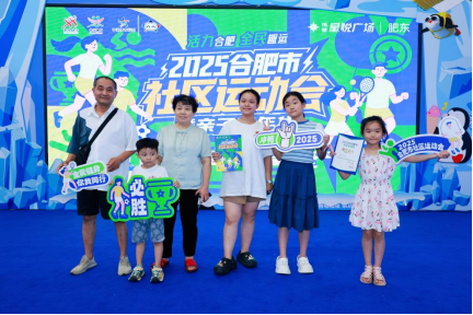 2025年7月25日,“2025合肥市社区运动会暨亲子嘉年华”活动在肥东伟星星悦广场圆满落幕。本次活动由合肥市体育局主办,肥东县教育体育局、肥东县店埠镇和睦湖社区、合肥市社会体育指导员协会及肥东伟星星悦广场联合协办。数百组参赛家庭齐聚一堂,在充满童趣的运动项目中共享欢乐亲子时光。