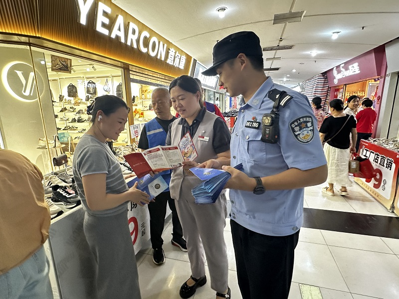 2025年9月18日,方庙街道办事处联合瑶海分局方庙派出所及合肥义警队伍在安徽大市场开展“防范电信诈骗、抵制毒品侵害、认清邪教本质”主题宣传活动。通过“案例讲解+互动体验+精准服务”的创新模式,向商户及周边居民普及安全防范知识。