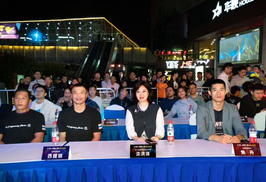 霓虹闪烁的擂台四周,观众们的欢呼声一浪高过一浪,来自中泰两国的泰拳选手在合肥赛场上开启英雄之间的中外格斗赛,金大地东西街项目总经理汝洪清女士、泰拳击世界冠军西提猜、焦舟共同出席本次比赛。