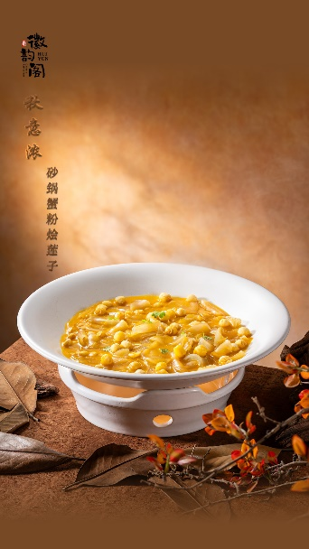 “旋折荷花剥莲子,露为风味月为香。”秋季莲子饱满清甜,蟹粉鲜香醇厚。二者相辅相成,给人以温润鲜美的味觉享受。