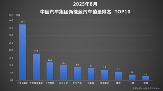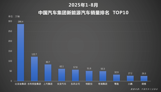 数据显示,比亚迪8月销售新能源汽车37.4万辆,1-8月累计销量达到286.4万辆,同比增长23%,远超行业平均增速,以绝对优势稳居中国汽车集团新能源销量榜首。面对460万辆年度最先销量目标,比亚迪已完成62%,为下半年的最后冲刺夯实了基础。