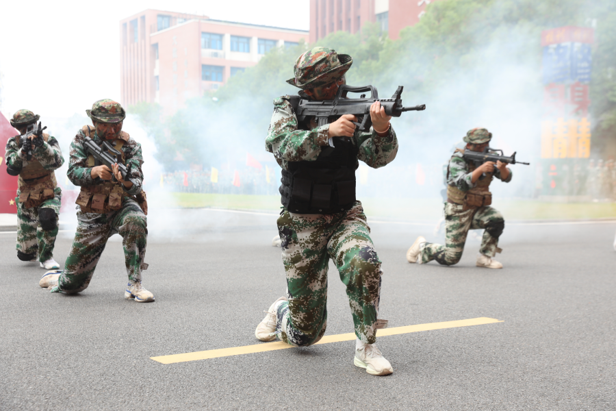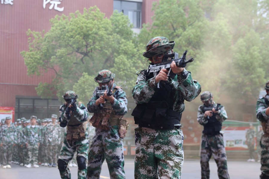随后的军训汇报表演将现场气氛推向高潮。六个表演方阵依次登场,为大家带来了一场震撼人心的视觉盛宴。旗舞方阵红旗猎猎,气势磅礴;擒敌拳方阵动作刚劲,喊声震天;韵律操方阵节奏明快,充满活力;刺杀操方阵一招一式尽显豪情;手语操方阵用无声的语言传递感恩与深情;战术表演方阵配合默契,战术动作干净利落,模拟实战场景扣人心弦。同学们整齐划一的动作、铿锵有力的口号和饱满的精神状态,赢得了现场阵阵掌声,充分展示了为期数日军训的丰硕成果。