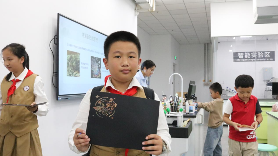 活动现场,参与活动的青少年在科技老师的讲解下,首先了解了金属箔片在特定条件下发生氧化反应而呈现出丰富色彩的化学原理。随后,学员们亲自投身创作实践,他们专注地在金属箔片上精心绘制图案,然后通过高温处理,箔片表面发生奇妙的变化,呈现出独特的色彩与纹理。最后,学员们小心翼翼地用刷子清理表面,一件件独一无二、色彩斑斓的烧箔作品逐渐显现。