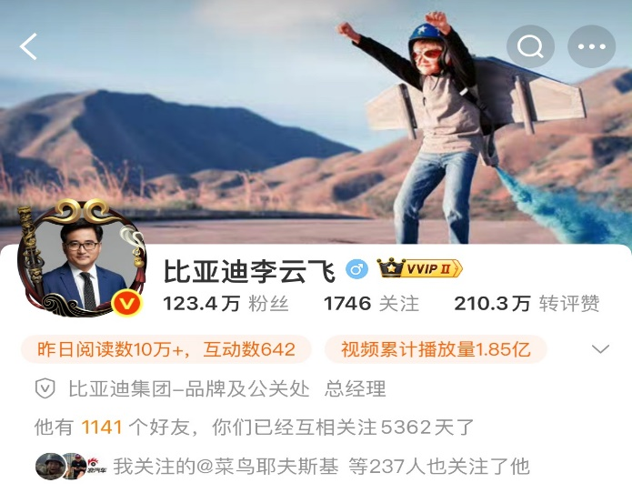 • 比亚迪李云飞社交媒体更名:顺应民意,强化品牌标识